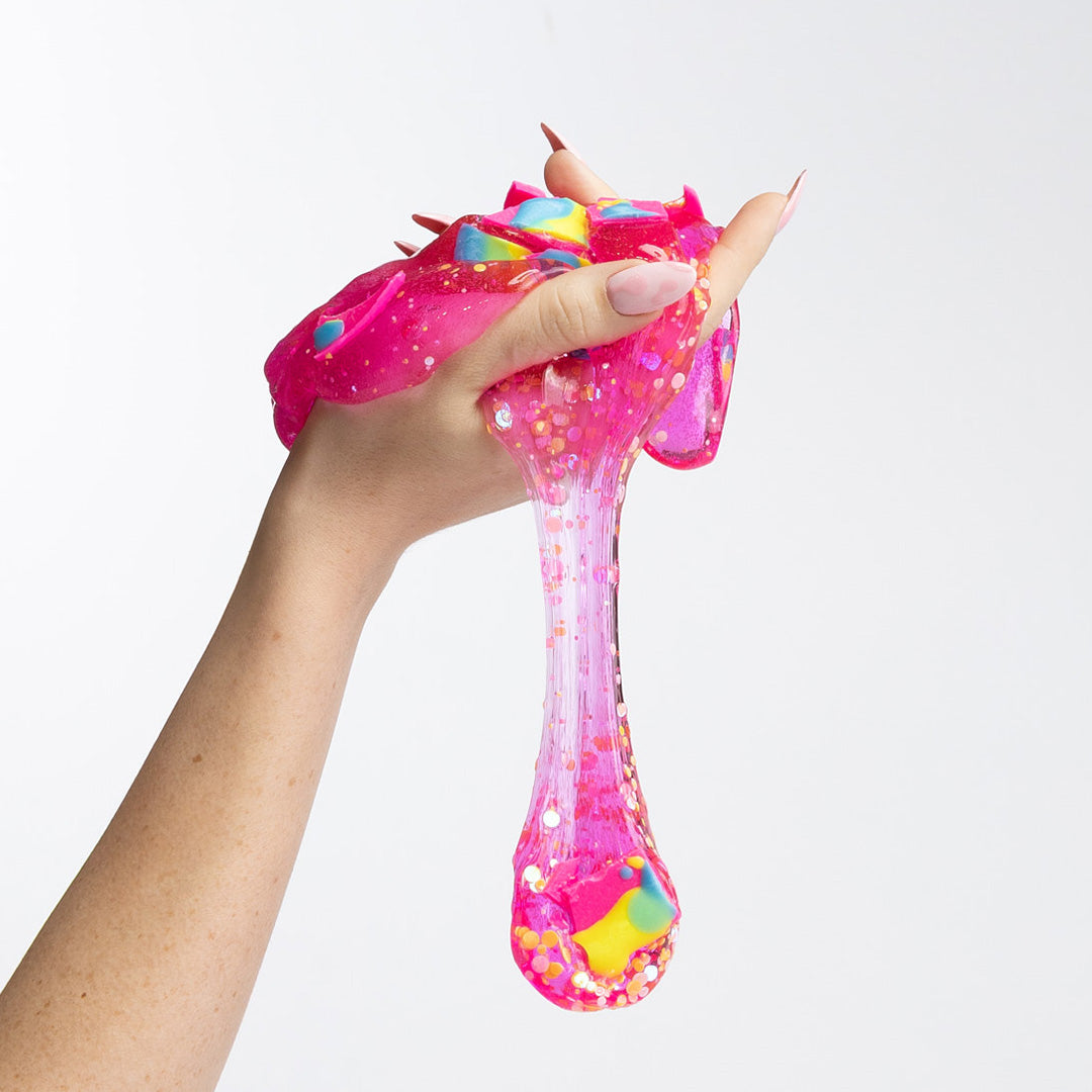 A crisp magenta clear slime that feels like the first day of summer in your hands.