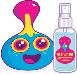 Before playing, do the "one finger test." Use one finger to see if the slime is sticky. If nothing sticks, you're good to go. If it is sticky, use the activator as needed (a little bit at a time or on your hands).