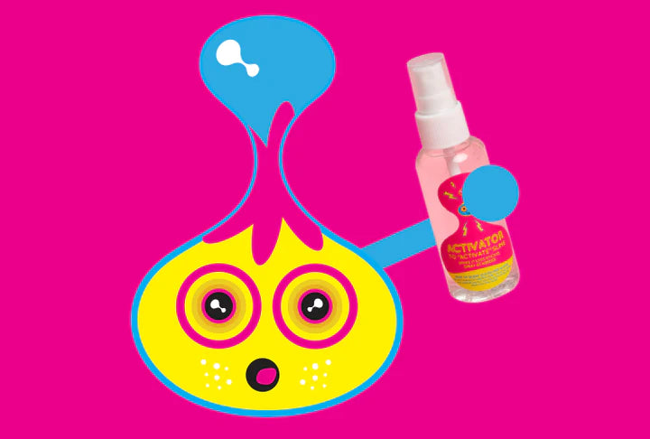 Before playing, start with the "one finger test." Use one finger to see if the slime is sticky. If nothing sticks, You're good to go. If something sticks, use the activator as needed (a little bit at a time or on your hands).