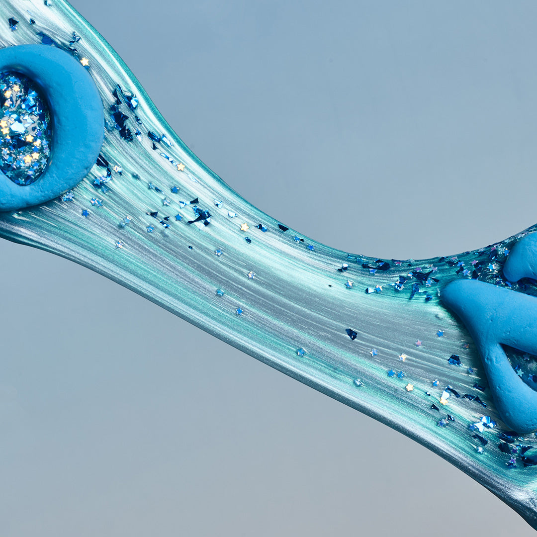 This type is called DIY clay because the clay piece that matches is hand-made (hence DIY) and when you mix it in with the base slime, you create a new texture (so you do-it-yourself too). Sometimes the clay pieces are so cute, it’s hard to imagine squishing them (you can let it dry out and keep it as a little friend). But we promise, mushing is incredibly satisfying. Whatever the base texture is, the addition of clay will make the slime more rich and dough-like and buttery in vibe. You can add the excess to an air-tight container you may have at home or a zip lock bag. Slime is hand-made and artisanal. Squeezing is known to release tense muscles associated with stress. Playing with it has a soothing feeling. Small parts are a choking hazard. Keep away from infants and pets (sofas, clothing and hair too).