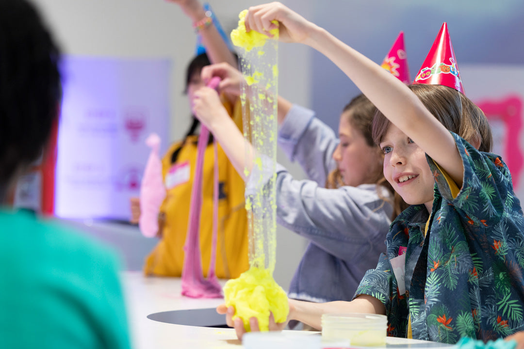 A: Guests create a dreamy slime at our DIY Slime Bar in the experience. You may enhance your party with an Elmer’s slime making class (from scratch) or other activities for an additional fee. See our brochure for details.