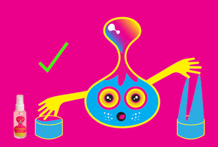 Before playing, start with the "one finger test." Use one finger to see if the slime is sticky. If nothing sticks, You're good to go. If something sticks, use the activator as needed (a little bit at a time or on your hands).