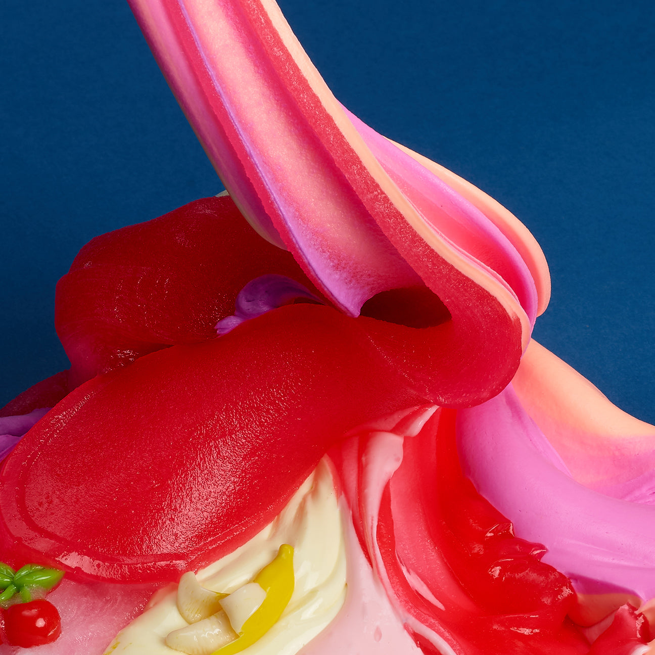 A beautiful, icing-like formation created upon stretching slime, filling it with air to make the “lines” that often look like soft serve ice cream, and then swirling it around itself.